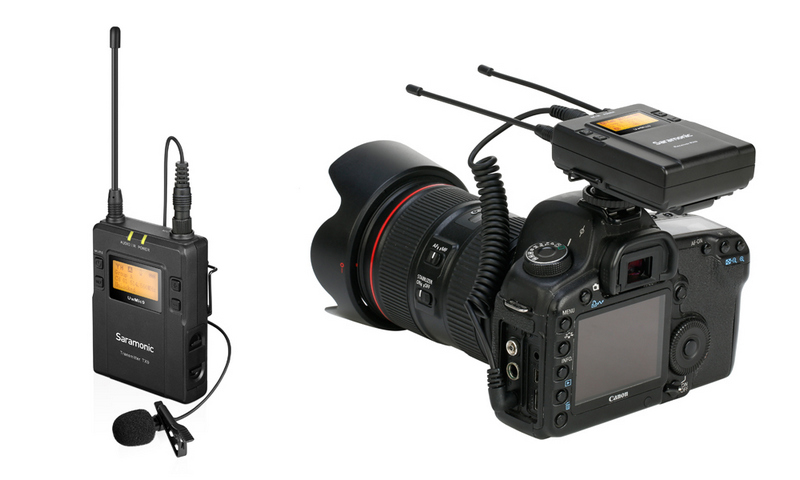 - Особенностью Saramonic UwMic9 является возможность использования двух передатчиков, т.е. одновременно принимать сигнал с двух петличек или с петлички и репортёрского микрофона.