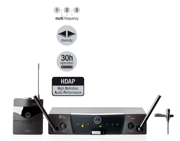 Отличаются великолепным звуком и простотой в эксплуатации. Уникальная технология HDAP (High Definition Audio Performance) обеспечивает реалистичный звук непревзойденного качества в любых условиях. Три переключаемые частоты в UHF диапазоне обеспечивают гибкость в работе. 9 каналов с различными несущими частотами в диапазоне 660 - 865 МГц. Двухантенный (diversity) приемник обеспечивает бесперебойный прием в самых сложных условиях. Система автоматически выбирает антенну с лучшим сигналом. Цельнометаллический корпус приемника SR 40 FLEXX с индикаторами приема и наличия аудио сигнала. Поясной передатчик PT 40 FLEXX укомплектован конденсаторным микрофоном CK 55 L. Петличный микрофон с кардиоидной направленностью. Питание от одной батареи АА (1.5В). Время работы передатчика до 30 часов. Дальность приема радиосигнала 100 метров. Звуковой диапазон: 35 - 20000 Гц. Соотношение сигнал/шум: 110 дБ