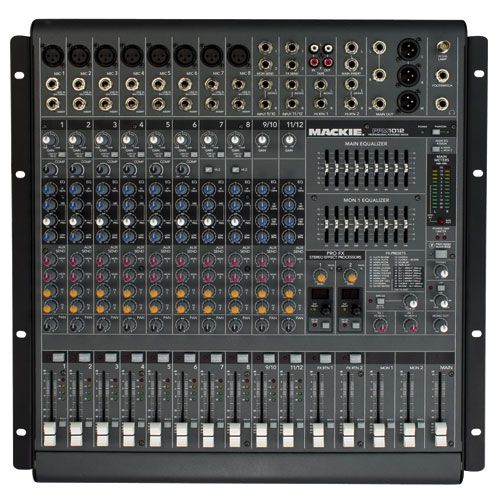 500-ваттный 12-канальный активный микшерный пульт с процессором эффектов и системой обнаружения обра ...
